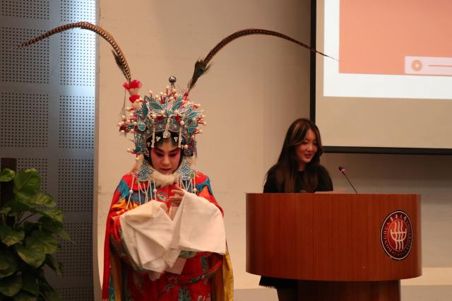 张老师不仅专注于磨炼自身的技艺,更关心中国传统戏曲的发展与传承,她希望当代大学生们也可以更加了解戏曲,了解我国的国粹,了解我国的传统文化。相信通过这次讲座,同学们能够对于我国传统文化有一个更深刻的理解和感悟。整场讲座通过表演、讲解和互动的完美结尾,为同学们带来了一场视听盛宴,本次讲座也在在座老师和同学们的掌声雷动中圆满结束。
