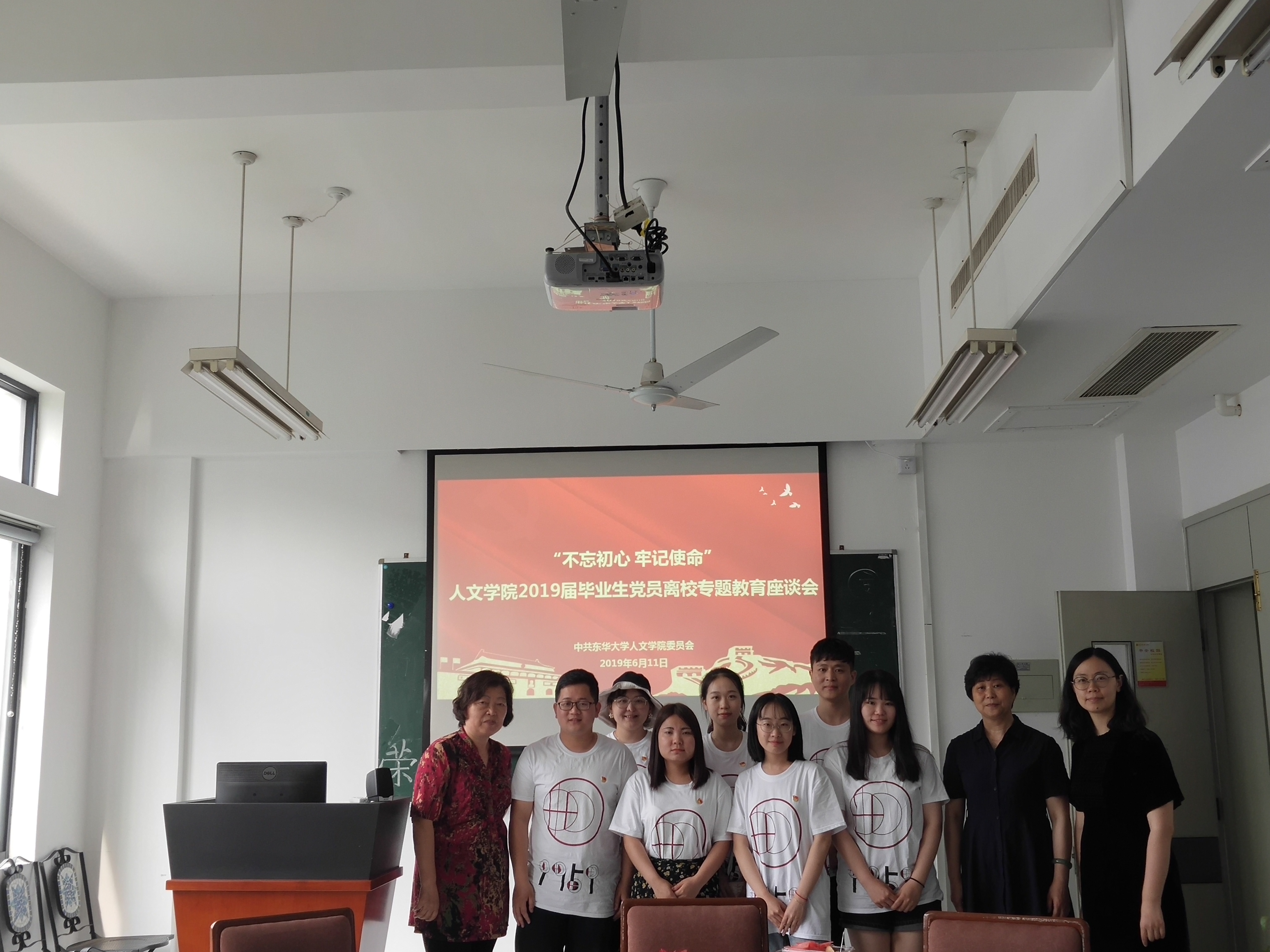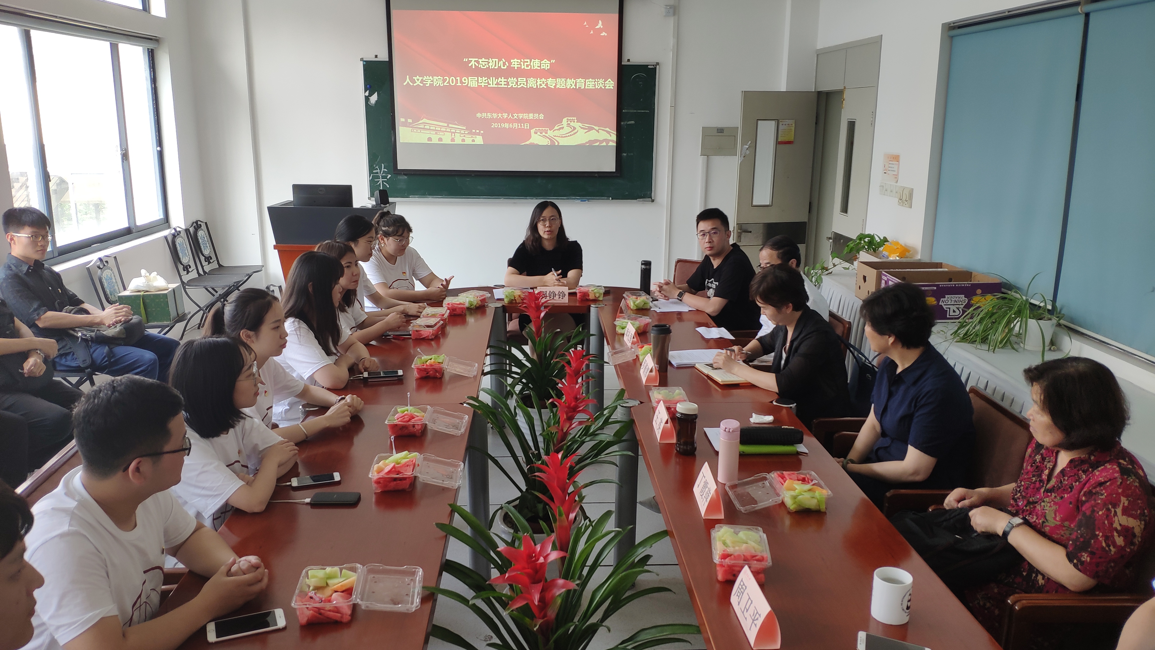 2019届毕业生离校再即,为确保毕业生安全、稳定、文明、愉快离校,有效推进平安校园、文明校园与和谐校园建设,切实做好毕业生党员离校前集中学习教育和组织关系转移管理等有关工作,滚球买球的app官网党委结合学院实际情况,于2019年6月11日,开展了以“不忘初心,牢记使命”为主题的毕业生党员离校专题教育座谈会。滚球买球的app官网党委书记王英、副书记罗薇娜,滚球买球的app官网关工委丁霞萍,滚球买球的app官网党委委员章礼强、叶长海、周卫平、周铮铮,以及毕业班辅导员、各学生党支部书记与滚球买球的app官网2019届毕业生党员出席本次活动。