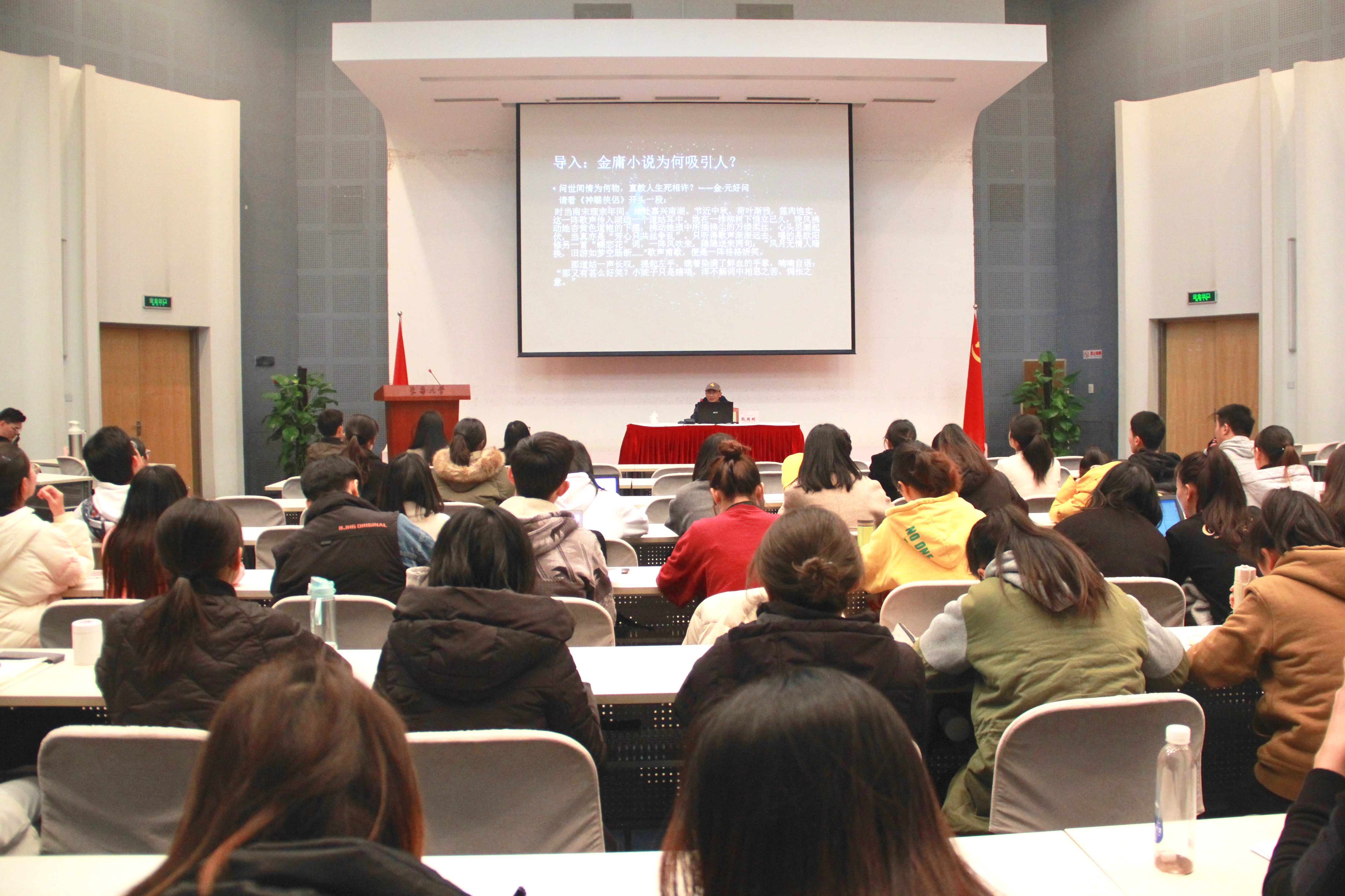 以“金庸小说为何吸引人”为话题引入,殷教授分析了《易经》、《文赋》、《毛诗序》等古代文论中的“情”论,并对《与山巨源绝交书》、《世说新语》、《论艺术的魅力》等文学著作进行解读,逐步深入“情”之论说。