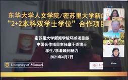 2021年4月7日21:00至23:00,滚球买球的app官网与密苏里大学新闻学院“2+2本科双学士学位”合作项目宣讲会在Zoom云端成功举行,这标志着两所学院的合作正式开始。密苏里大学新闻学院环球项目部中国合作项目主任章于炎博士和环球项目部学生/学者顾问杨力老师参与了本次宣讲,滚球买球的app官网院长张科静教授、传播学专业主任杨桃莲教授、外事秘书姜文韬老师一同参与本会。传播学专业主任杨桃莲教授主持本次会议。