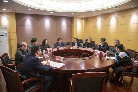 韩哲宇代表学院党政对蒋国宏一行来访表示欢迎,并介绍了学院的发展历程、专业和学科分布、师资队伍建设、人才培养体系、党建工作以及近期推动的十四五编制规划的思路等。
