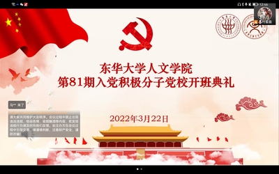 3月22日,滚球买球的app官网第81期入党积极分子党校开班仪式在庄严的《国歌》声中拉开帷幕。党校“云开班”标志着同学们的思想学习方式进入了全新的阶段。在开班仪式上,党校老师付盈盈宣布开班并宣读了党校课程安排、纪律要求、评优细则等。党建辅导员穆莉老师寄语党校学员,希望全体学员要珍惜此次党校学习的机会,在党校的学习中遵守党校规范,增长知识、提升素养,努力成为党和国家发展战略的坚定信仰者、有力传播者和自觉践行者,成为同新时代共同进步的“使命青年”。最后,开班仪式在《国际歌》雄浑庄严的旋律中圆满结束。
