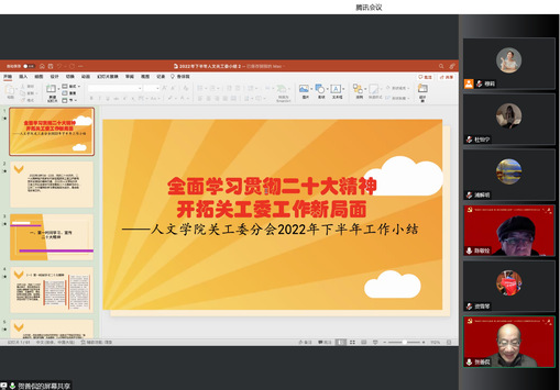 12月28日,滚球买球的app官网关工委2022年终总结大会在线上举行。校关工委副主任浦解明,校关工委办公室侯晓彤,滚球买球的app官网关工委老同志、学院党政班子成员、党委委员、专职辅导员参加会议。学院党委副书记资雪琴主持本次会议。