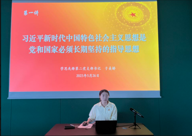 支部党员张雨菲结合自身前往云南边疆少数民族地区开展乡村振兴研究的社会实践,呼吁党员要自觉践行习近平新时代中国特色社会主义思想,用以改造客观世界、推动事业发展,用以观察时代、把握时代、引领时代,以强化理论学习指导发展实践,以深化调查研究推动解决发展难题,把学习和调研落实到完成党的二十大部署的各项任务中去。在党课最后,张雨菲号召大家“牢记习近平总书记嘱托,以奋斗姿态激扬青春”。支部成员也纷纷表示正值青春年华,除了学好理论知识,还应该志存高远、脚踏实地,把课堂学习和乡村实践紧密结合,可以利用暑期社会实践,深入基层,为全面建设社会主义现代化国家贡献青春力量。