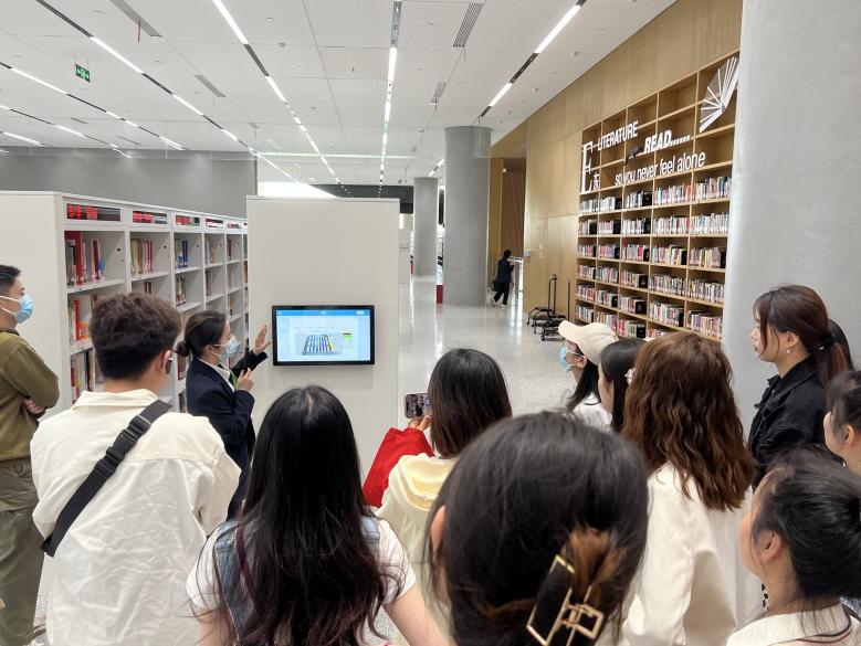 随后,在讲解员的带领下,党员们开启了图书馆的畅游之旅。讲解员详细介绍了馆内设计、空间布局、艺术作品、智能设施和文创产品等。一楼大厅地面上水磨石艺术品《往来春秋》,三楼阅读区以水滴形式呈现的艺术品《陪伴》,在图书馆七楼的阅读推广区、城市客厅以及馆藏精品等区域、还有可以触屏检索的智能书架,这些都让支部成员近距离感受到了智慧复合型图书圣地的别样魅力和文化、科技和艺术联合驱动的现代化图书馆建设成果,全方位了解上图从“数字化图书馆”到“智慧化图书馆”的提升演变,真正实际体会“向世界讲好上海故事”的重要价值。