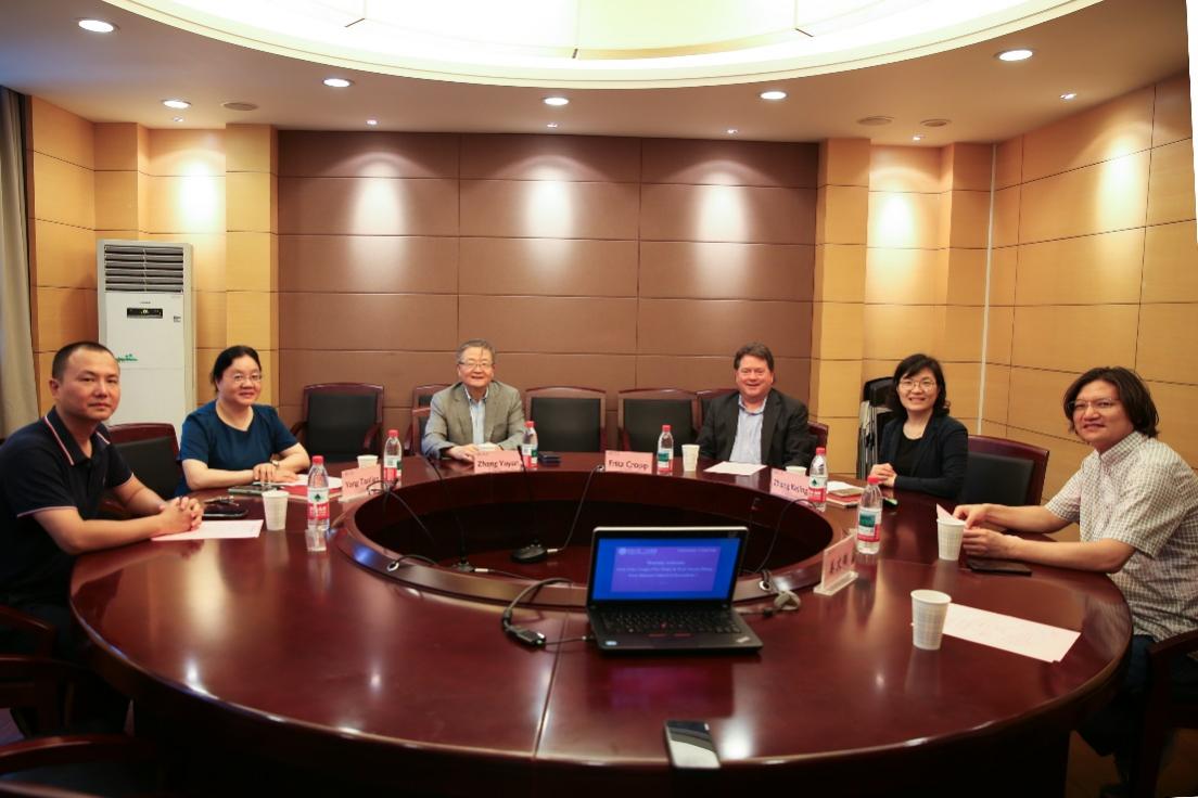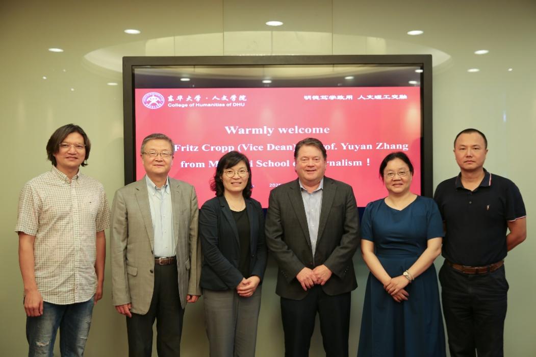 6月25日,滚球买球的app官网院长张科静会见了美国密苏里大学新闻学院副院长Fritz Cropp、中国合作项目主任章于炎博士。滚球买球的app官网传播系主任杨桃莲教授,赵高辉教授,学院实验室相关负责人参与座谈交流。