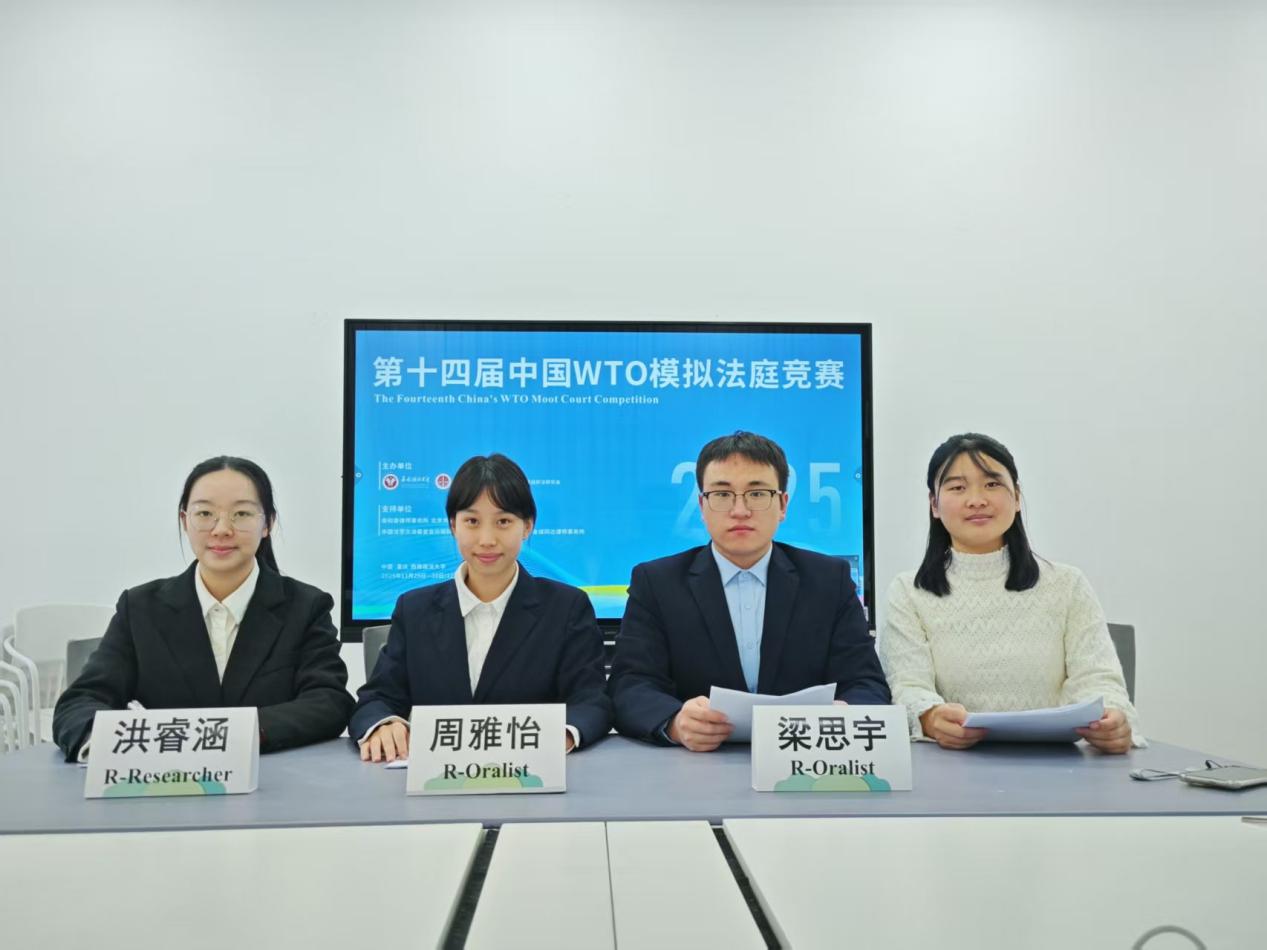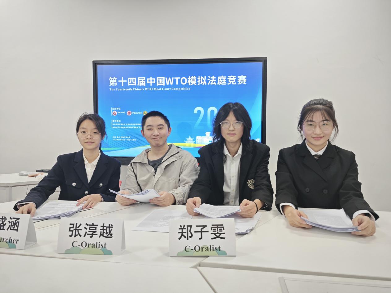 本次竞赛以模拟WTO贸易争端案件为核心,涵盖申诉方与被诉方文书撰写和现场答辩等方面,重点考察参赛选手的书状撰写、案件分析、逻辑思辨及临场应变能力。滚球买球的app官网组建了一支专业高效的参赛团队,由焦传凯老师担任指导老师,王丽雯担任领队,李鹤鸣担任学生教练,郑子雯、张淳越、陈诺、祖盛涵担任申诉方;梁思宇、周雅怡、陈培颖、洪睿涵担任被诉方。团队成员昼夜打磨文书、反复推演答辩,以饱满热情全力备赛,尽显奋进姿态与专业担当,为竞赛做好了充分准备。